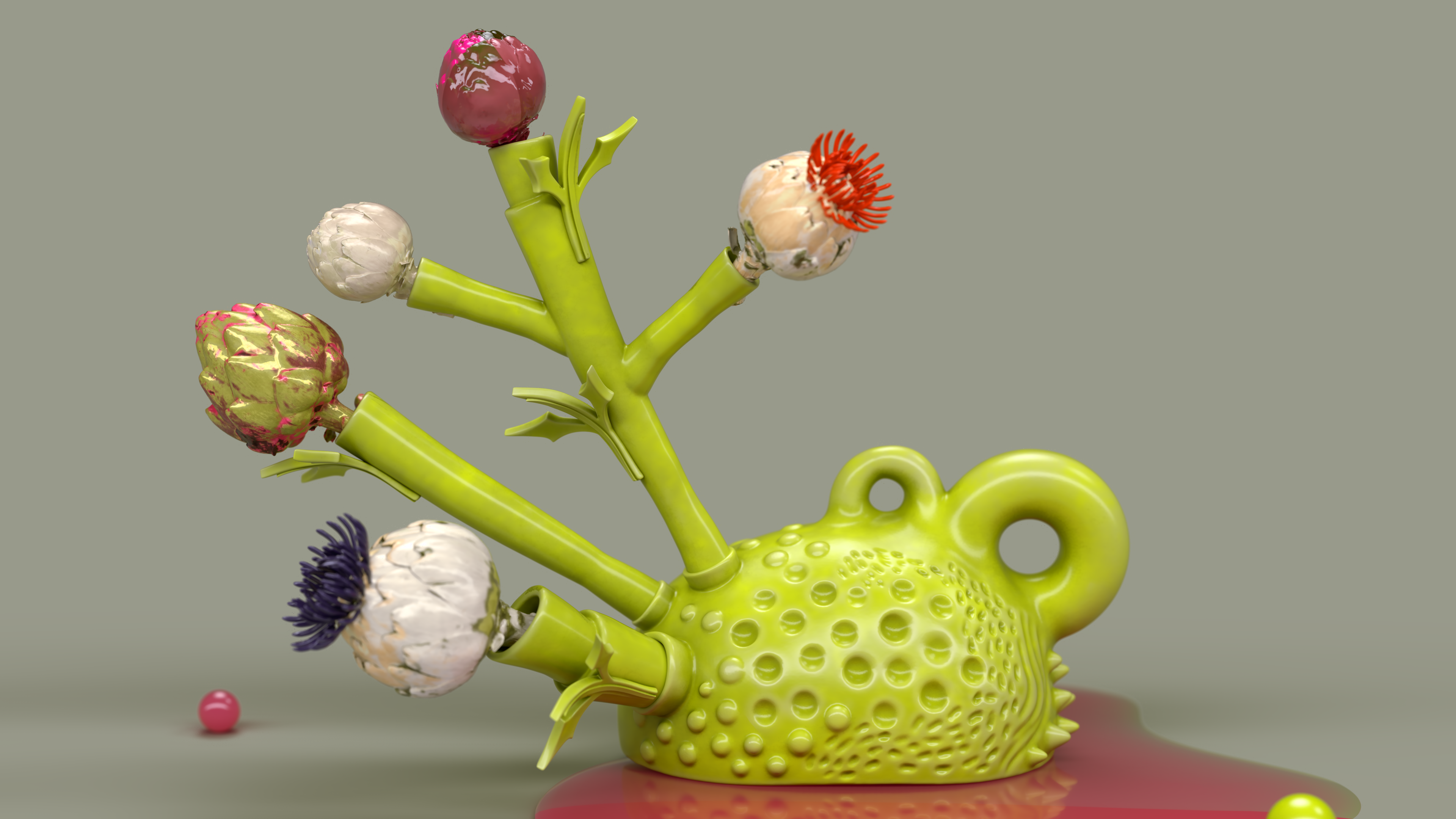 Here is a project I created for the GDC'24 Adobe Substance 3D booth presentation. I wanted to show the power of this newly implemented stylization tool in Sampler. I scanned the artichoke and directly in Sampler added the stylization filters. I also used this project to test out the new Modeler update. With the new inflate, and other brush tool improvements, I was able to carve into the base of this ceramic vase which felt so close to real life clay workflow. I really enjoyed the process of creating this weird vase. Congrats to the product teams on such a great update!