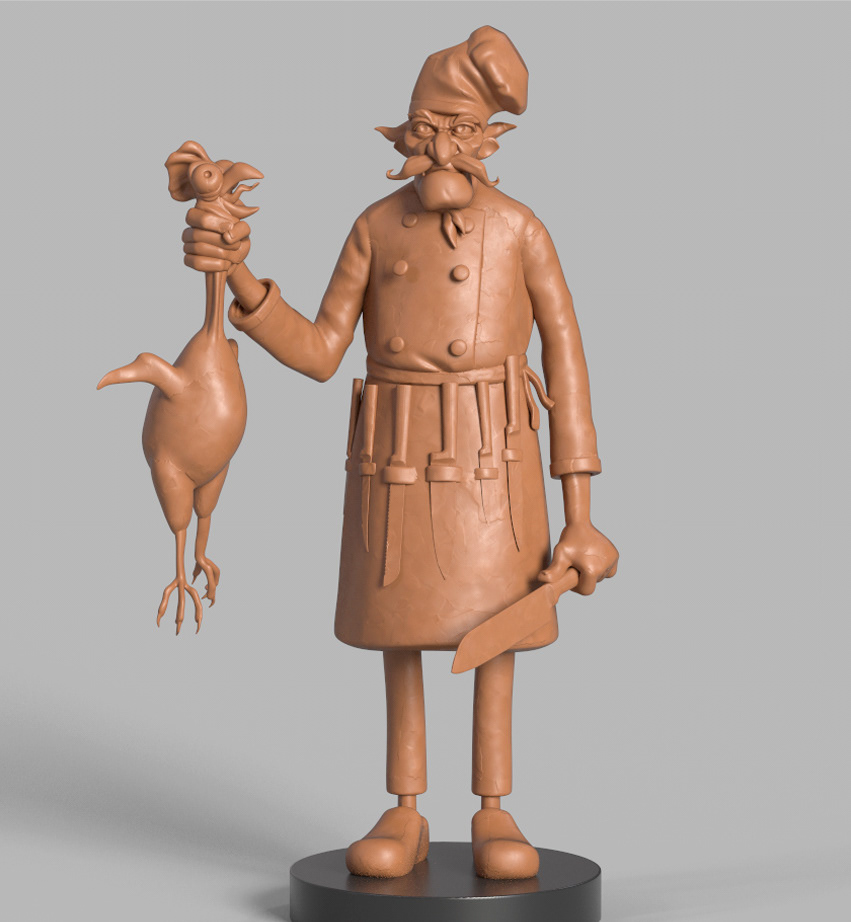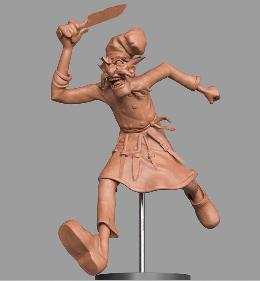 Gio took the lead on the Evil Chef character, using Substance 3D Modeler. Initially, we had a basic pose, but Gio refined and exaggerated this, inspired by things like old Warner Bros. cartoons. The stretches and squashes of those animations provided a great reference for the chef’s more extreme, expressive movements. The key here was to keep the pose dynamic, with the character’s silhouette suggesting motion and energy.