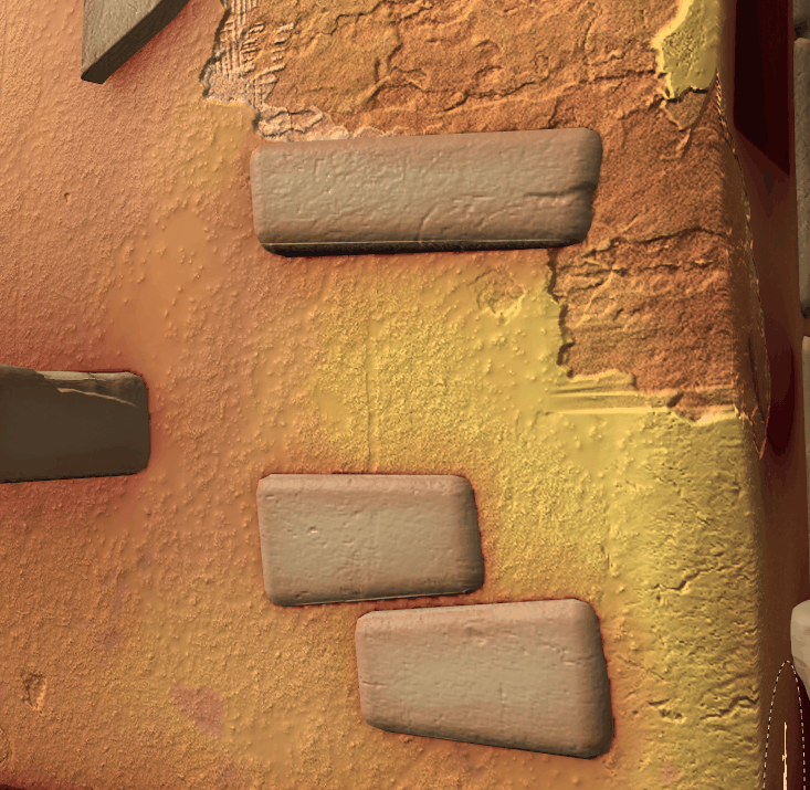 The buildings were an interesting challenge. I started with assets downloaded from the Substance 3D Assets site—basic modern building models. Using Maya, I warped and modified these to fit into our whimsical composition. Louise added a painterly touch with custom brushes for cracks and stylized stone textures. Her dedication was astounding—she hand-painted cracks and surfaces that brought a stunning realism to the scene. She even designed a custom "crack brush" for this purpose. Those tiny details, like cracks in a wall or weathered cobblestones, may seem minor, but they add a richness that pulls you into the world.