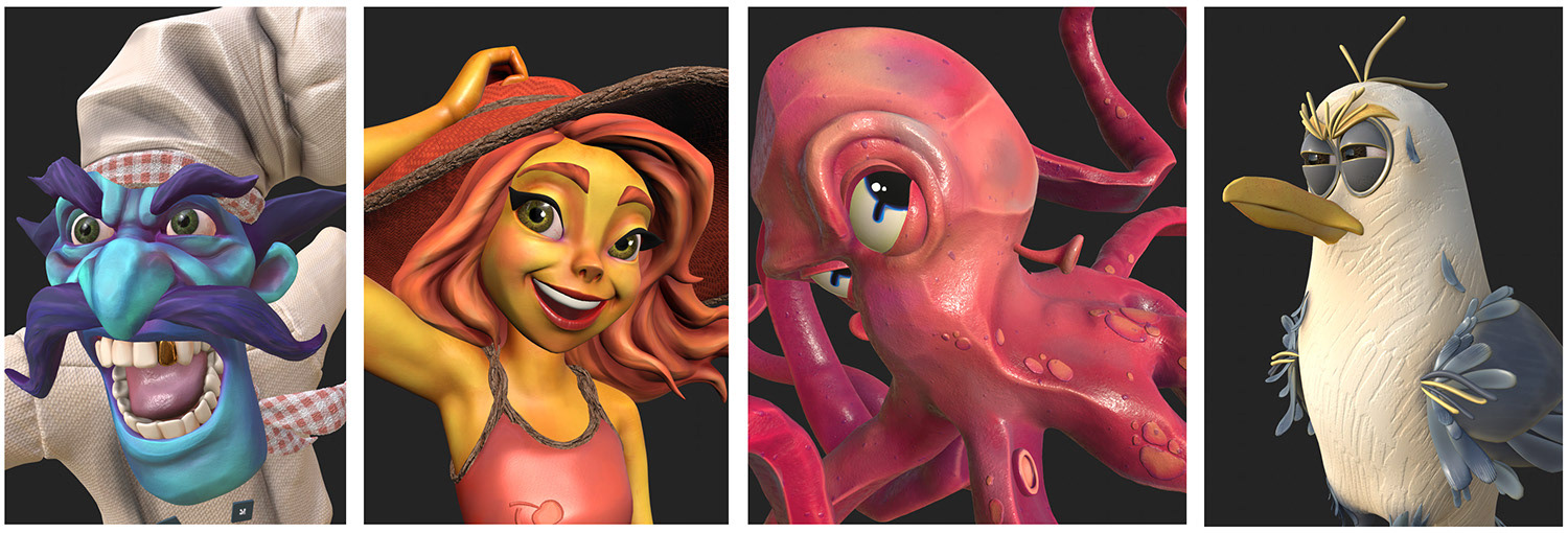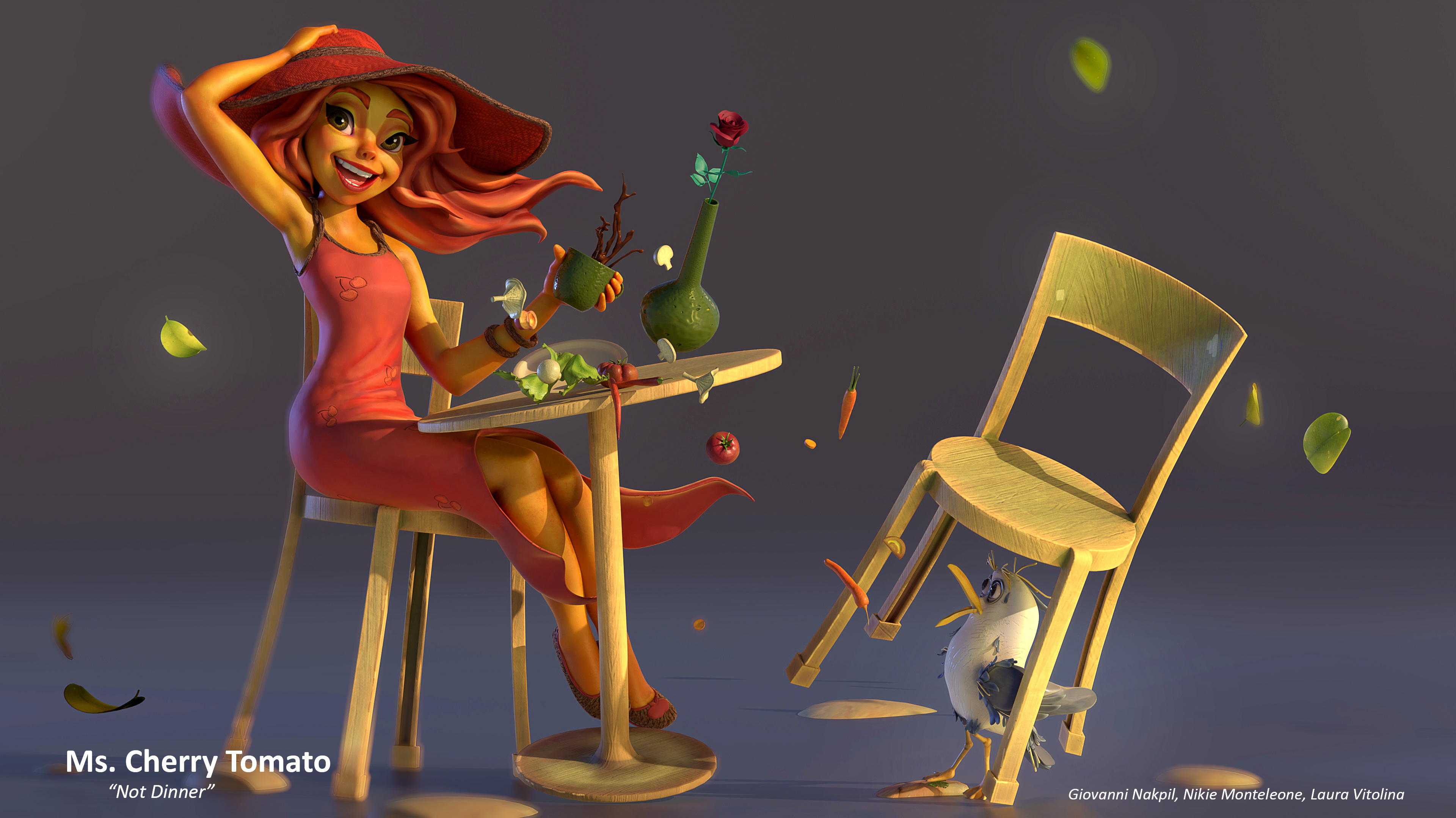 Miss Cherry Tomato, as we called her, was another standout character. I started by posing her in ZBrush, again using one of the mannequins. Early on, for her head, I simply borrowed a model from Gio, from an older project he’d worked on.